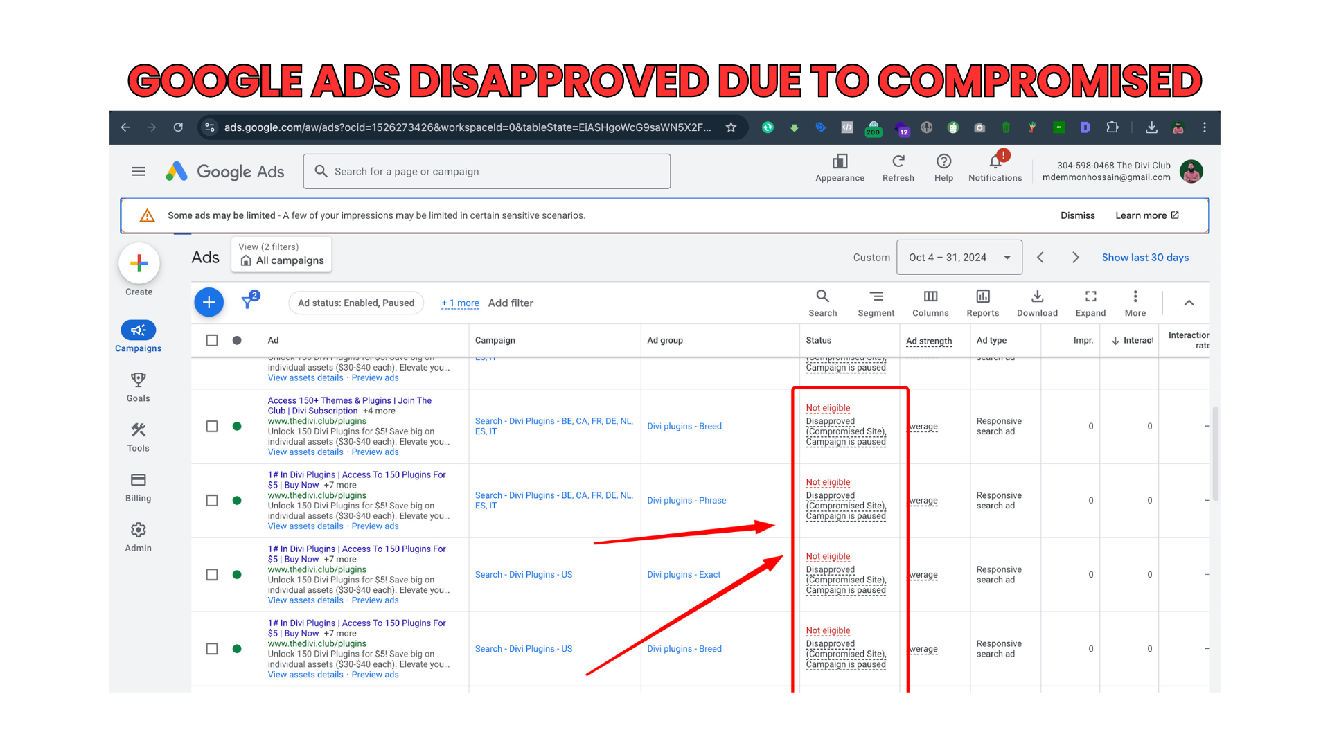 Because of this, Google Ads got disapproved every time the owner tried to run ads.